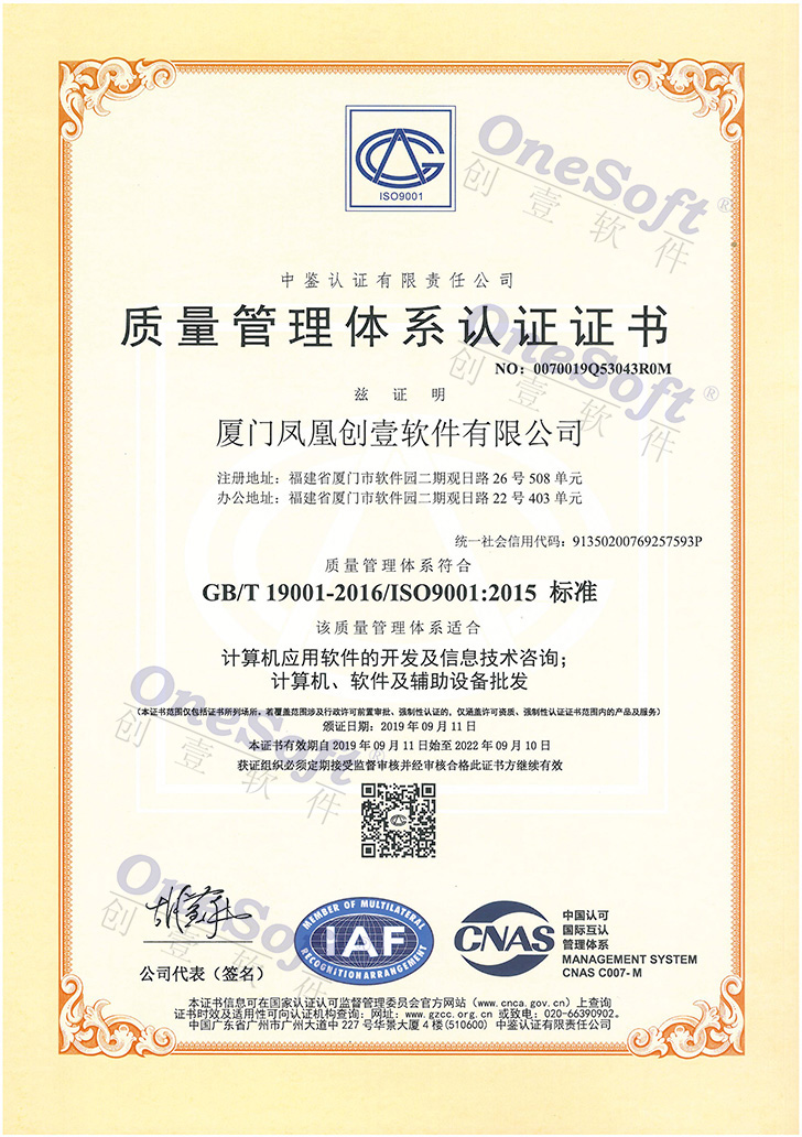 質(zhì)量管理體系認證證書
