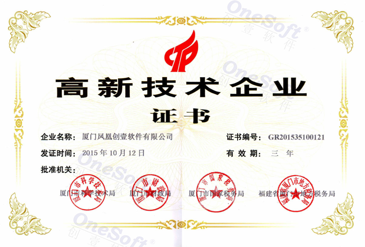 高新技術企業(yè)證書