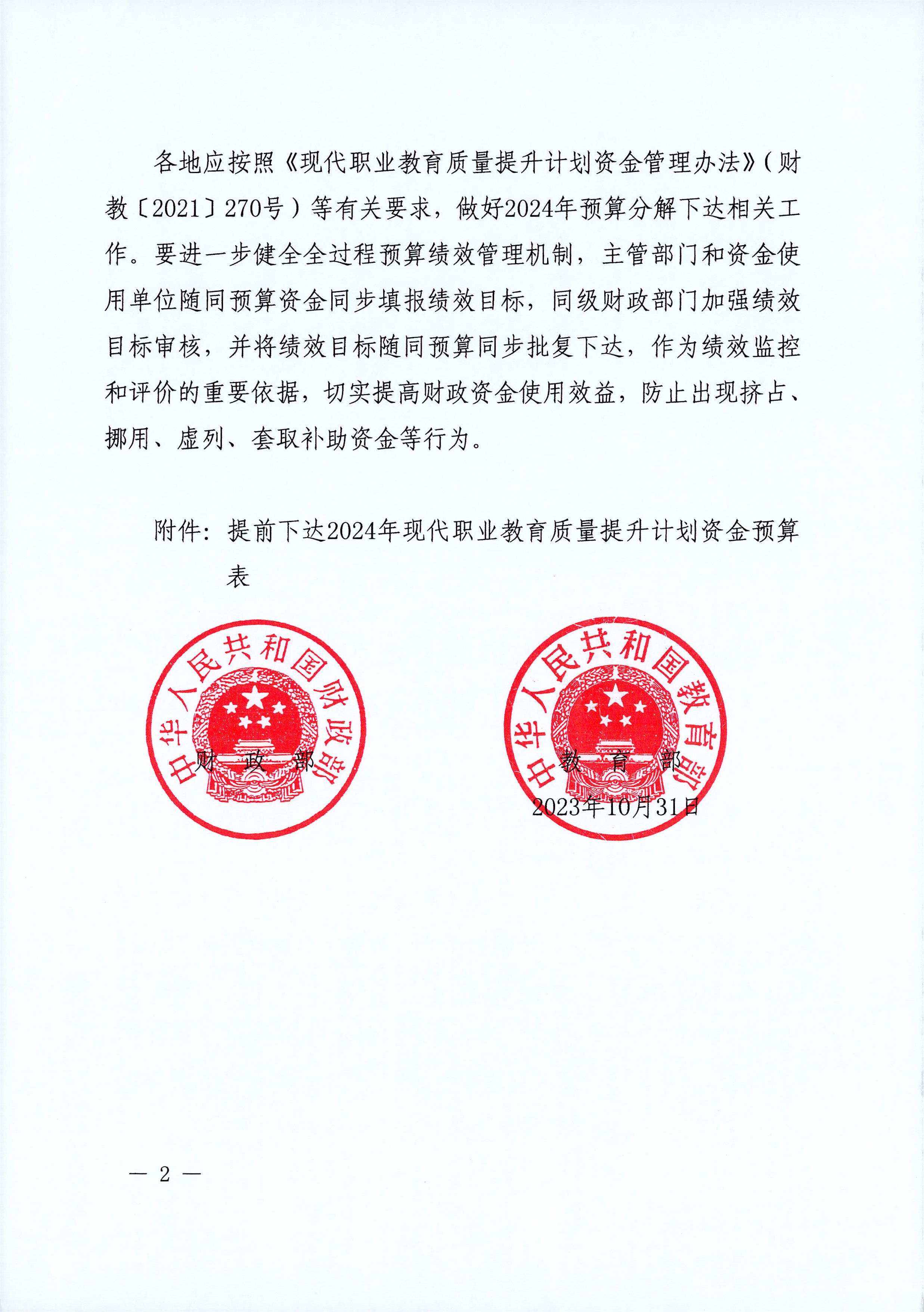 近日,財政部、教育部發(fā)布《提前下達2024年現(xiàn)代職業(yè)教育質量提升計劃資金預算的通知》