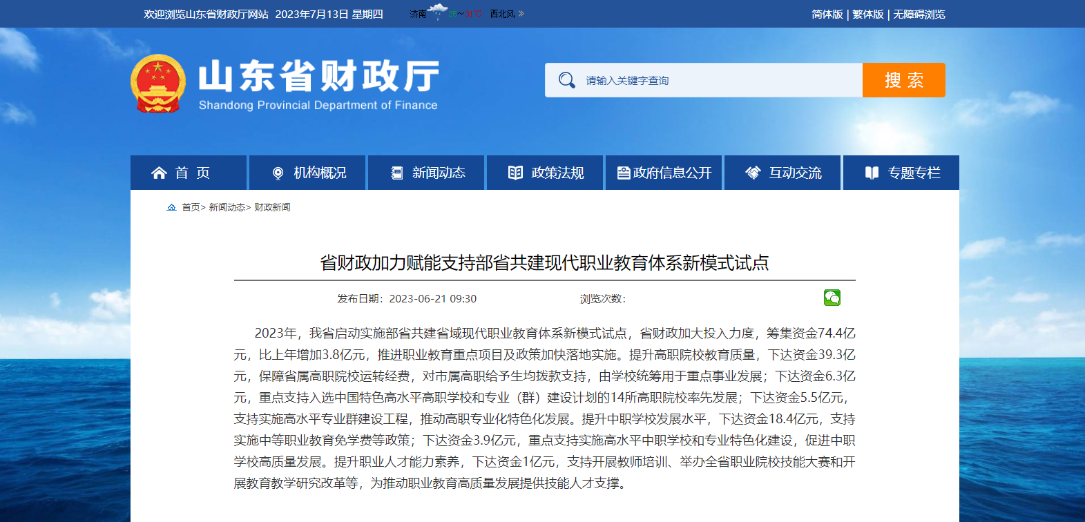 山東省財(cái)政籌集74.4億元資金支持省域現(xiàn)代職業(yè)教育體系建設(shè)