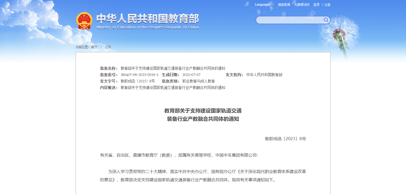 教育部關(guān)于支持建設(shè)國(guó)家軌道交通 裝備行業(yè)產(chǎn)教融合共同體的通知
