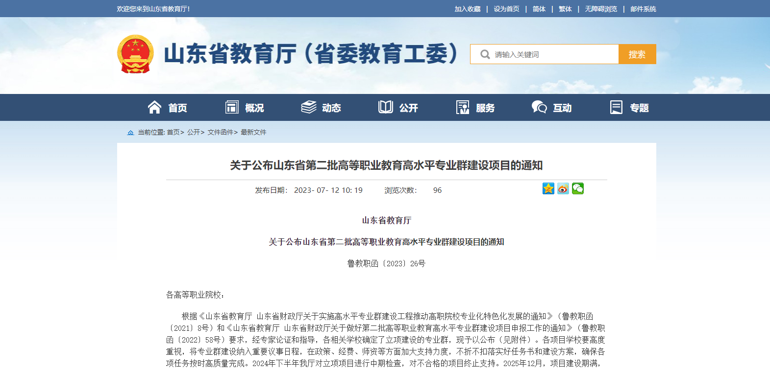山東省公布第二批高等職業(yè)教育高水平專業(yè)群建設(shè)項(xiàng)目的通知