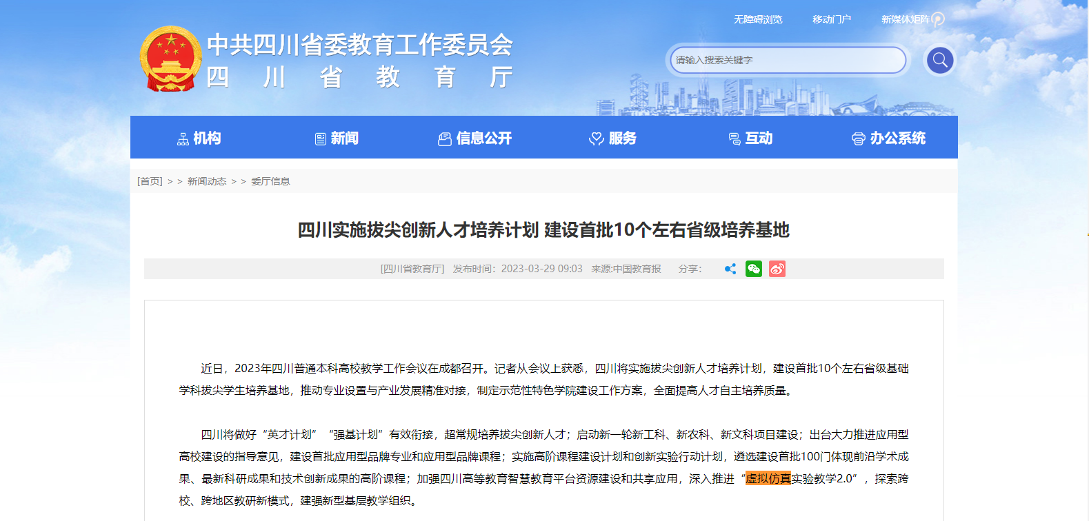 近日,2023年四川普通本科高校教學(xué)工作會(huì)議在成都召開。會(huì)上公布四川將實(shí)施拔尖創(chuàng)新人才培養(yǎng)計(jì)劃,建設(shè)首批10個(gè)左右省級(jí)基礎(chǔ)學(xué)科拔尖學(xué)生培養(yǎng)基地,推動(dòng)專業(yè)設(shè)置與產(chǎn)業(yè)發(fā)展精準(zhǔn)對(duì)接,制定示范性特色學(xué)院建設(shè)工......