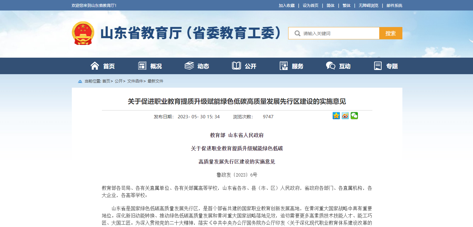 教育部 山東省人民政府雙部門發(fā)布關(guān)于促進(jìn)職業(yè)教育提質(zhì)升級(jí)賦能綠色低碳 高質(zhì)量發(fā)展先行區(qū)建設(shè)的實(shí)施意見