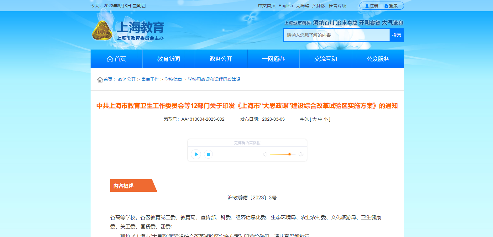 中共上海市教育衛(wèi)生工作委員會(huì)等12部門關(guān)于印發(fā)《上海市“大思政課”建設(shè)綜合改革試驗(yàn)區(qū)實(shí)施方案》的通知