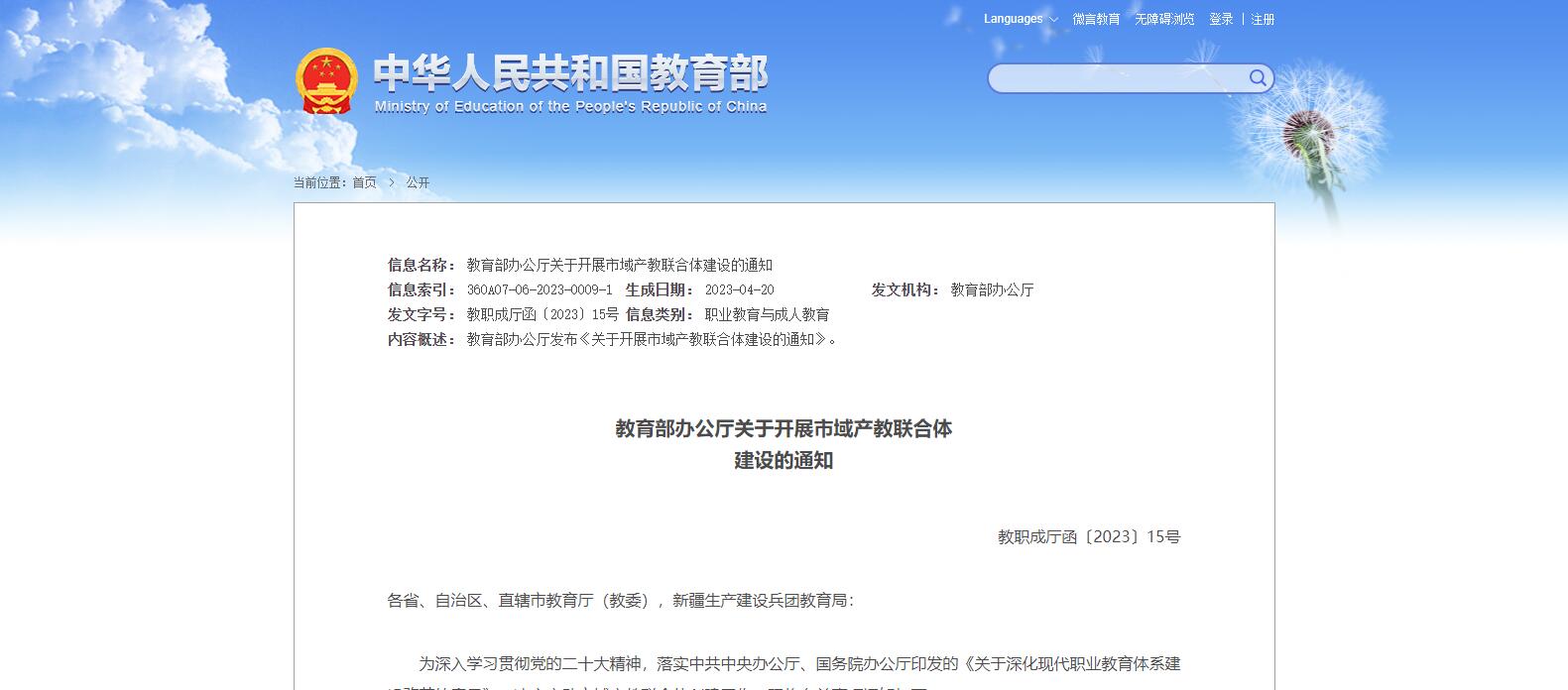 教育部發(fā)布關于開展市域產(chǎn)教聯(lián)合體建設的通知