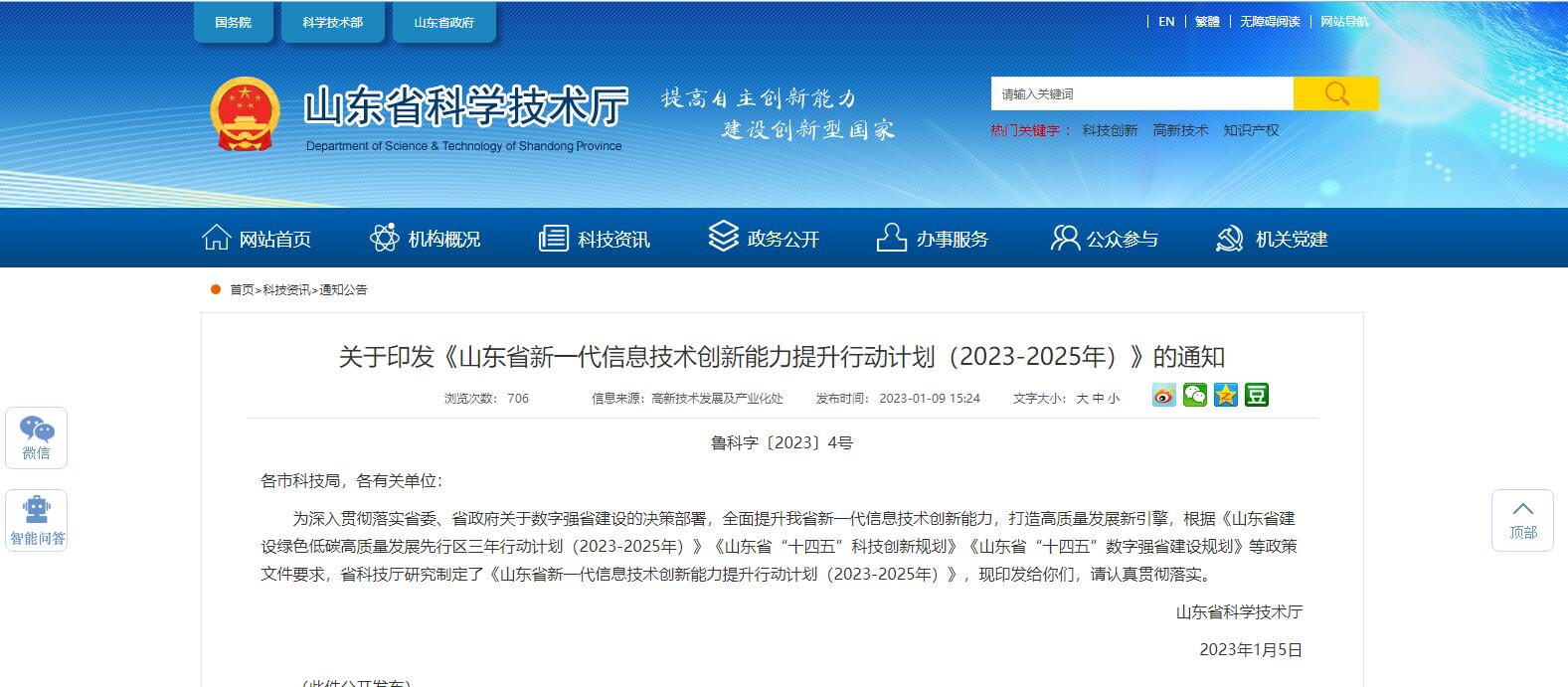 山東省印發(fā)《山東省新一代信息技術創(chuàng)新能力提升行動計劃(2023-2025年)》的通知