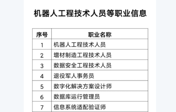 18個(gè)新職業(yè)信息向社會(huì)公示