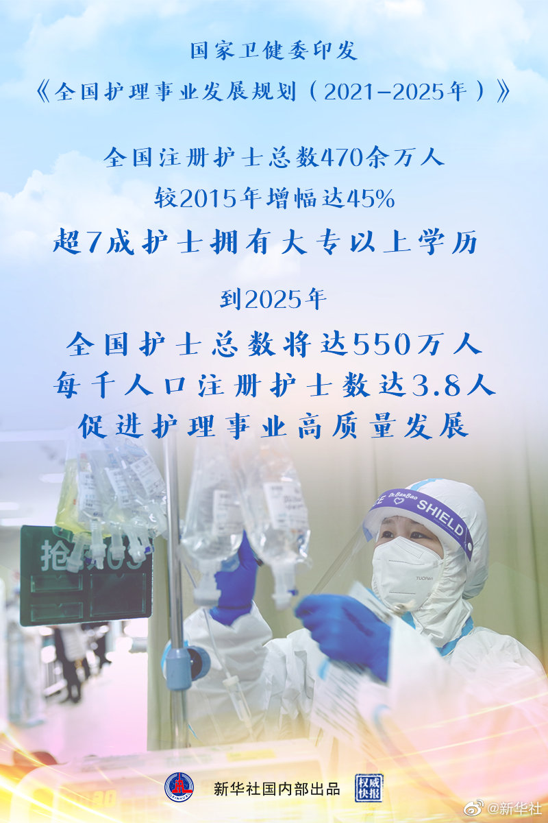國家衛(wèi)健委近日印發(fā)《全國護理事業(yè)發(fā)展規(guī)劃(2021-2025年)》。規(guī)劃指出,2020年底,全國注冊護士總數(shù)470余萬人,較2015年增幅達45%。具有大專以上學歷的護士超70%,護士隊伍學歷素質(zhì)進一......