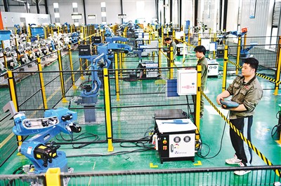 近年來,江西省贛州市加強青年技術(shù)人才技能培訓(xùn),促進適齡青年實現(xiàn)技能成才。圖為贛州市贛縣區(qū)的一家智能裝備制造企業(yè)內(nèi),幾名青年技工在加緊調(diào)試出口的工業(yè)機器人訂單產(chǎn)品。   朱海鵬攝(人民視覺) ......