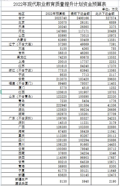 據(jù)財政部官網(wǎng),財政部、教育部近日發(fā)布通知,下達(dá)2022年現(xiàn)代職業(yè)教育質(zhì)量提升計劃資金預(yù)算,本次下達(dá)資金預(yù)算金額為52.76億元,加上已提前下達(dá)金額249.81億元,目前累計下達(dá)預(yù)算為302.57億元。......