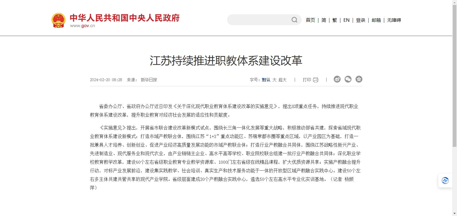 江蘇持續(xù)推進(jìn)職教體系建設(shè)改革