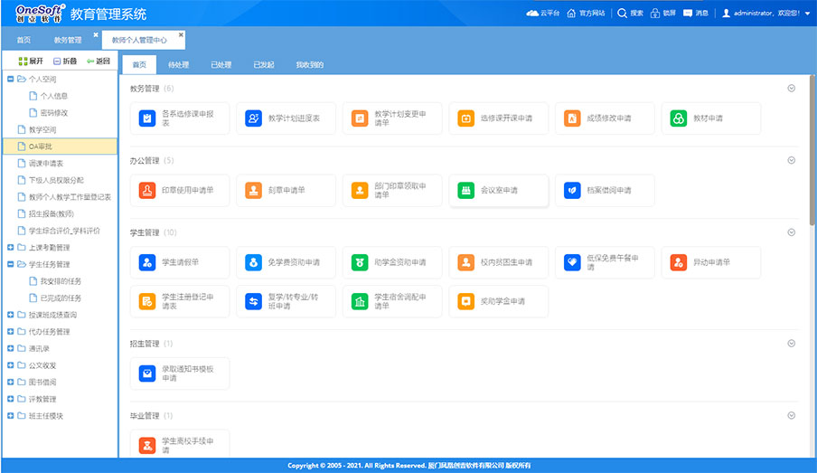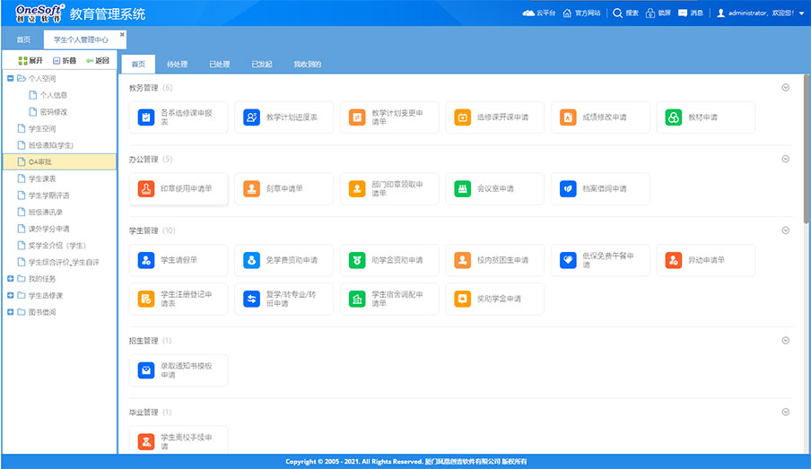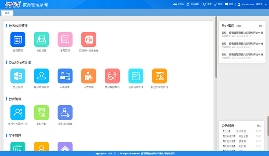 系統(tǒng)由原來(lái)的桌面級(jí)的管理系統(tǒng)轉(zhuǎn)變?yōu)槊嫦蛴脩籼峁┓?wù)的功能強(qiáng)大的企業(yè)級(jí)應(yīng)用平臺(tái)。如工作報(bào)告、任務(wù)交辦、項(xiàng)目管理、工作任務(wù)管理、管理看板、學(xué)校知識(shí)庫(kù)、檔案管理等這些工具支撐日常工作,為教職工工作增效,為干部決策和管理賦能,可提大提升全員工作效率和學(xué)校管理水平。